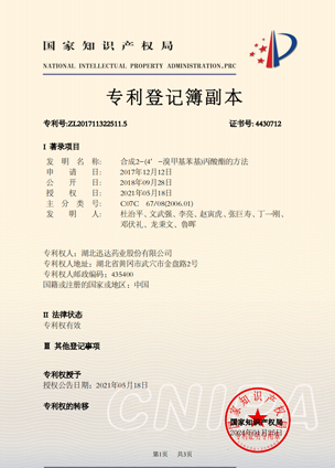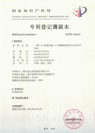 公司擁有一支高素質(zhì)科研隊(duì)伍,具備專業(yè)而高效的研發(fā)能力。近幾年,共取得科技成果30項(xiàng),其中9項(xiàng)獲國(guó)家發(fā)明專利,2項(xiàng)獲湖北省科技進(jìn)步獎(jiǎng),開(kāi)發(fā)新產(chǎn)品8個(gè),綠色合成、手性合成和催化等技術(shù)引領(lǐng)行業(yè)發(fā)展。主要銷往歐美、日本、韓國(guó)、中東、印度等40多個(gè)國(guó)家和地區(qū)。