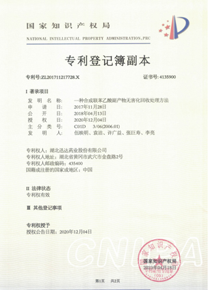 湖北迅達(dá)藥業(yè)股份有限公司是專業(yè)從事醫(yī)藥原料藥及中間體生產(chǎn)經(jīng)營(yíng)的國(guó)家重點(diǎn)高新技術(shù)企業(yè),也是國(guó)家 4A 標(biāo)準(zhǔn)化良好行為企業(yè)、湖北省智能制造試點(diǎn)示范企業(yè)、湖北省國(guó)際科技合作基地、湖北省信息化與工業(yè)化融合試點(diǎn)示范企業(yè)、湖北省創(chuàng)新型企業(yè)、湖北省上市后備“金種子”企業(yè)、省級(jí)“專精特新”企業(yè)、上云標(biāo)桿企業(yè)。公司被評(píng)為湖北省醫(yī)藥工業(yè)五十強(qiáng)、湖北省醫(yī)藥行業(yè)創(chuàng)新型企業(yè)十強(qiáng)、湖北省醫(yī)藥行業(yè)出口型企業(yè)十強(qiáng)、湖北省優(yōu)秀企業(yè)、湖北省“重合同守信用”企業(yè)、湖北省模范勞動(dòng)關(guān)系和諧企業(yè)、湖北知識(shí)產(chǎn)權(quán)示范企業(yè)、中國(guó)外貿(mào)出口先導(dǎo)指數(shù)樣本企業(yè)。